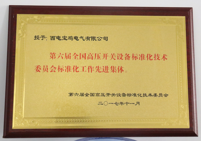 在本次年會(huì)上,西電寶雞電氣有限公司被授予第六屆全國(guó)高壓開(kāi)關(guān)設(shè)備標(biāo)準(zhǔn)化技術(shù)委員會(huì)標(biāo)準(zhǔn)化工作先進(jìn)集體并頒發(fā)了獎(jiǎng)牌。