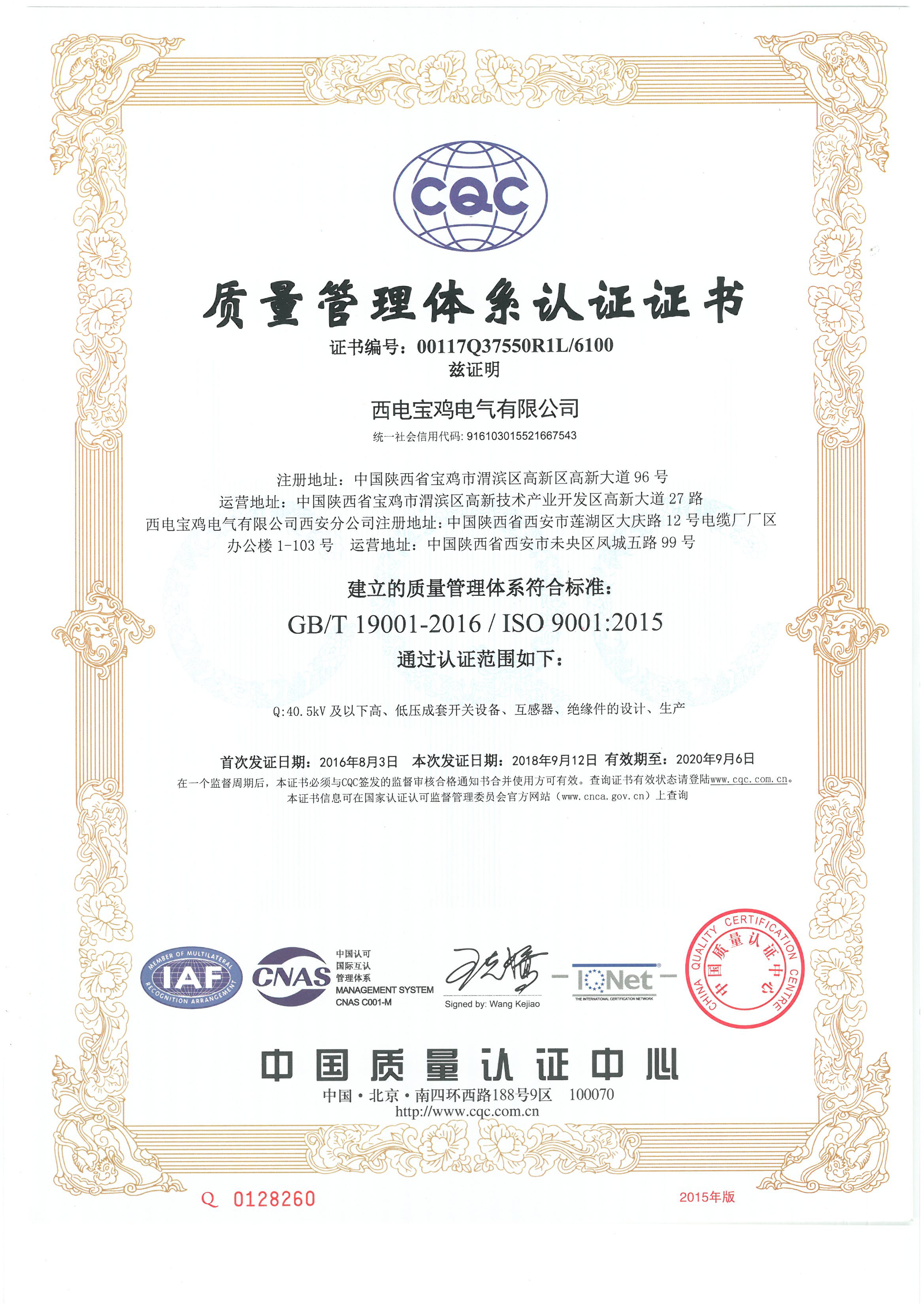 近日,從西電寶雞電氣傳來(lái)喜訊,公司已取得了新版(國(guó)標(biāo)2016版)認(rèn)證證書,順利的完成了質(zhì)量、環(huán)境管理體系換版工作。 公司也將以此次轉(zhuǎn)版換證為契機(jī),嚴(yán)格執(zhí)行三體系標(biāo)準(zhǔn)要求,確保三體系的有效剛性運(yùn)行,不斷提升公司質(zhì)量、環(huán)境、職業(yè)健康安全管理水平,促進(jìn)企業(yè)高質(zhì)量發(fā)展。