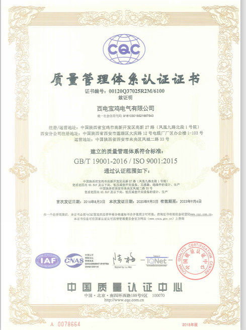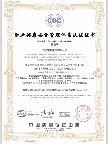 近日,西電寶雞電氣順利取得了由中國質(zhì)量認證中心頒發(fā)的質(zhì)量、環(huán)境、職業(yè)健康安全管理體系新的認證證書,標志著該司質(zhì)量、環(huán)境管理體系的復(fù)評換證,職業(yè)健康安全管理體系的換版工作圓滿完成。