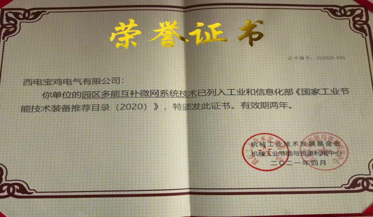 近日,西電寶雞電氣多能互補微網(wǎng)系統(tǒng)技術(shù)成功入選工業(yè)和信息化部公布的《國家工業(yè)節(jié)能技術(shù)裝備推薦目錄(2020)》,這是該項目被工業(yè)和信息化部列入2019-2020年物聯(lián)網(wǎng)關(guān)鍵技術(shù)與平臺創(chuàng)新類、集成創(chuàng)新與融合應用類示范項目名單后,又一次獲得的國家級榮譽。