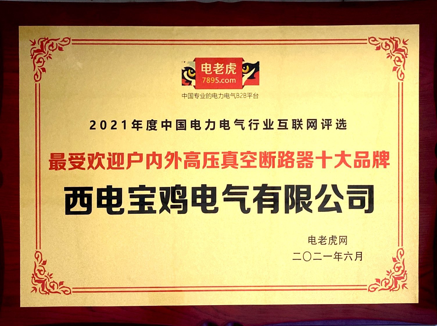 6月18日,電氣產(chǎn)品產(chǎn)業(yè)子集團(tuán)所屬西電寶雞電氣有限公司(以下簡(jiǎn)稱(chēng)“西電寶雞電氣”)在南京召開(kāi)的2021 中國(guó)電力能源采購(gòu)峰會(huì)暨變壓器成套電氣產(chǎn)業(yè)鏈采購(gòu)大會(huì)上,獲得2021年度“最受歡迎戶(hù)內(nèi)外高壓真空斷路器十大品牌”榮譽(yù)稱(chēng)號(hào)。本次評(píng)選活動(dòng)有近百家超實(shí)力的戶(hù)內(nèi)外高壓真空斷路器生產(chǎn)企業(yè)參加,西電寶雞電氣憑借先進(jìn)的生產(chǎn)工藝、穩(wěn)定的產(chǎn)品質(zhì)量,超強(qiáng)的品牌傳播、優(yōu)質(zhì)的系統(tǒng)服務(wù),超高的人氣支持榮獲此殊榮。