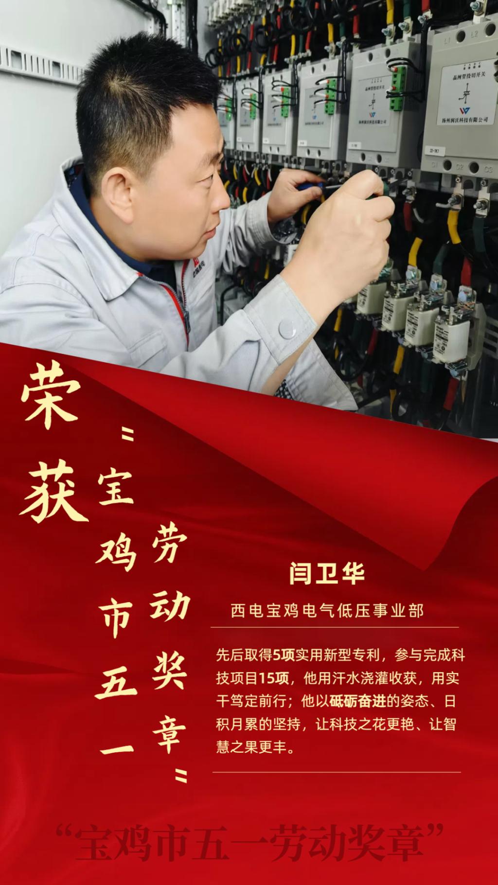 人間最美是勞動(dòng),花團(tuán)錦簇迎“五一”。在五一國際勞動(dòng)節(jié)到來之際,西電寶雞電氣毛寧星獲評(píng)“中國電氣裝備工匠”、閆衛(wèi)華獲評(píng)“寶雞市五一勞動(dòng)獎(jiǎng)?wù)隆?/span>,進(jìn)一步激勵(lì)公司廣大干部職工大力弘揚(yáng)勞動(dòng)精神,激揚(yáng)奮斗情懷,為寶雞市社會(huì)經(jīng)濟(jì)及企業(yè)高質(zhì)量發(fā)展做出新的更大的貢獻(xiàn)。
