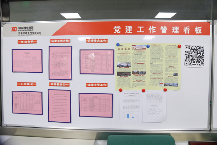 經(jīng)過西電寶雞電氣辦公樓三層西頭,大家不經(jīng)意間會(huì)發(fā)現(xiàn)兩個(gè)展板上展示著幾句鏗鏘有力的宣傳標(biāo)語(yǔ)“黨建增進(jìn)實(shí)力、黨建彰顯魅力、黨建激發(fā)活動(dòng)”“聚精會(huì)神抓黨建、專心致志搞經(jīng)營(yíng)、一心一意謀發(fā)展”,這只是看板背面,走進(jìn)西電寶雞電氣黨群工作處,兩塊黨建工作管理看板正面一下子映入人的眼簾,吸引人的眼球,“有特色、出亮點(diǎn)、走在前”九字工作方針更是格外醒目,公司黨委組織架構(gòu)、黨員構(gòu)成、年度工作目標(biāo)、年度重點(diǎn)工作,月度重點(diǎn)工作,本周主要工作、黨建督查情況反饋、宣傳簡(jiǎn)報(bào)、喜迎十九大等欄目排列有序、圖文并茂、內(nèi)容詳盡。