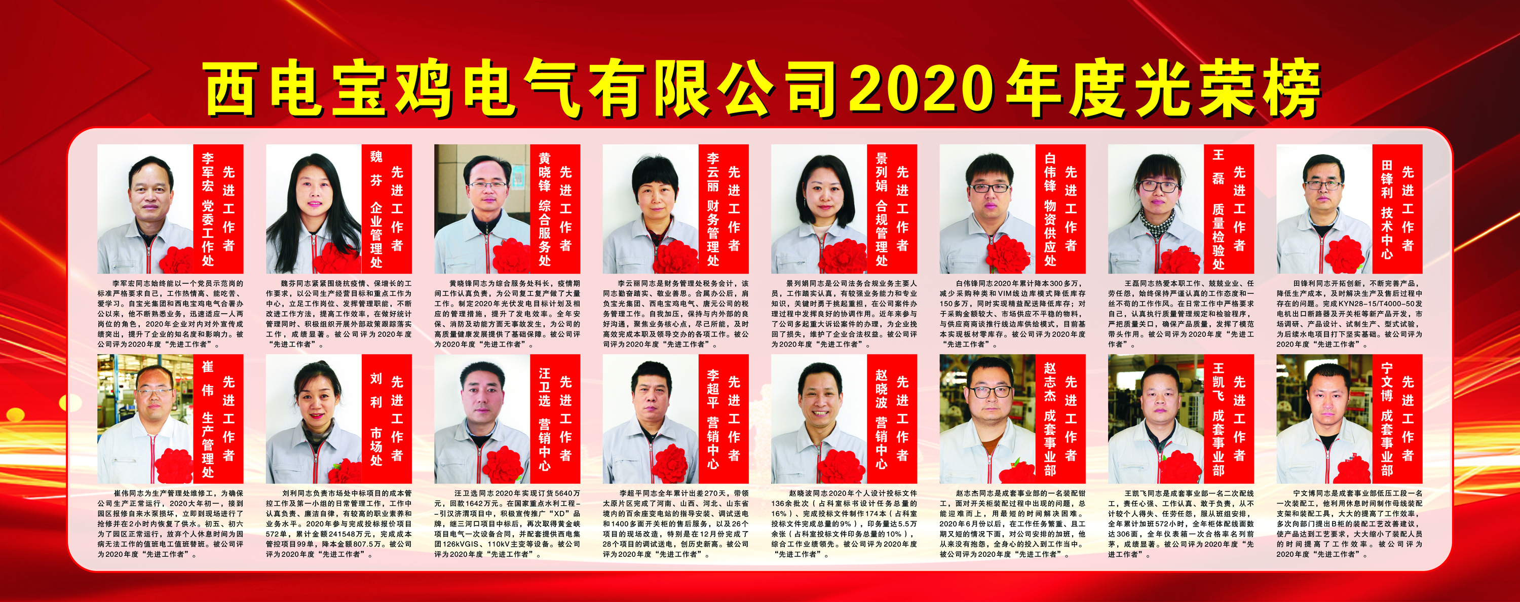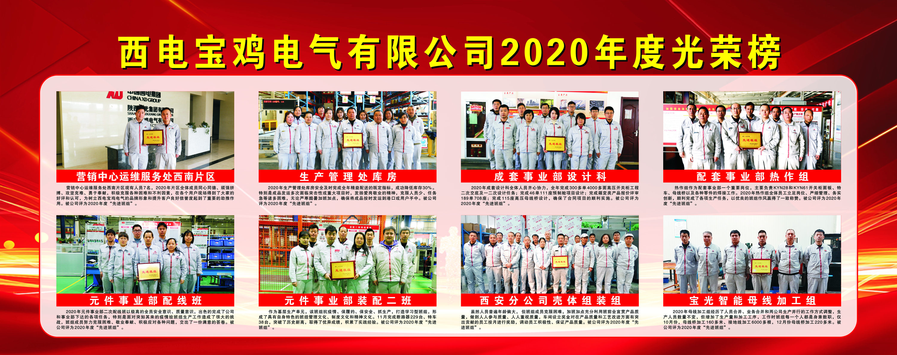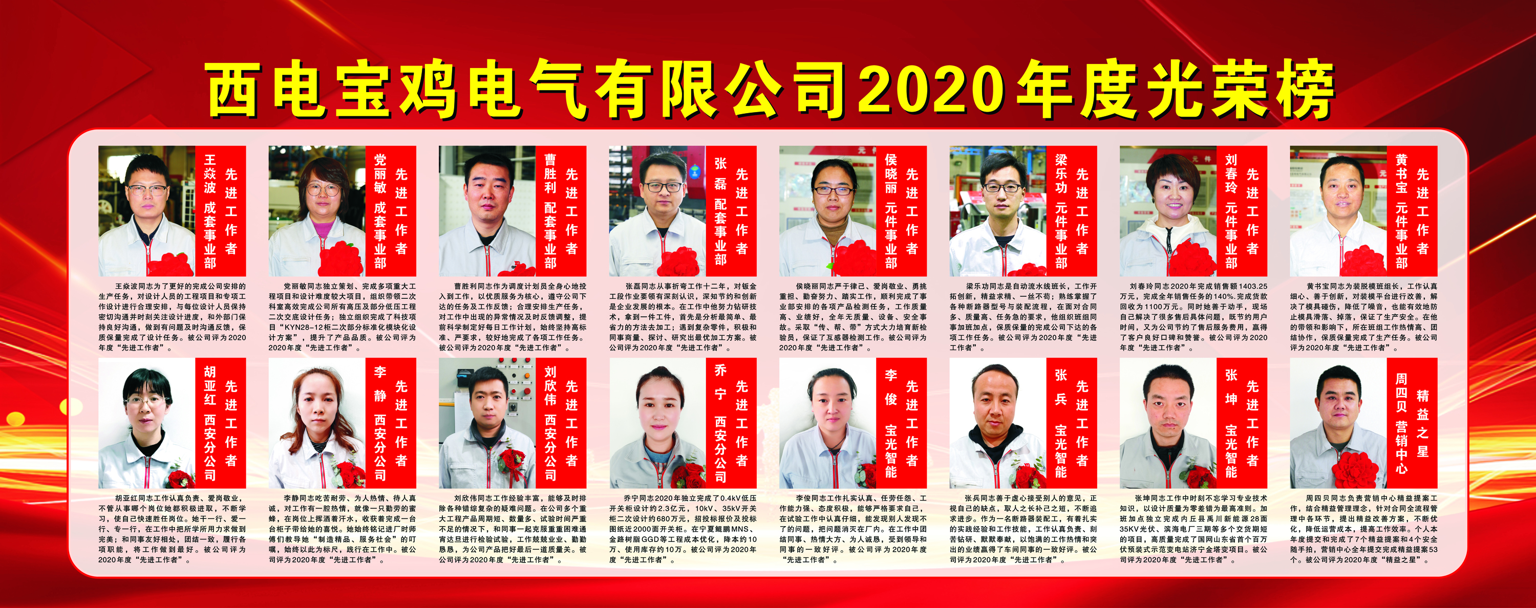 西電寶雞電氣2020年度光榮榜