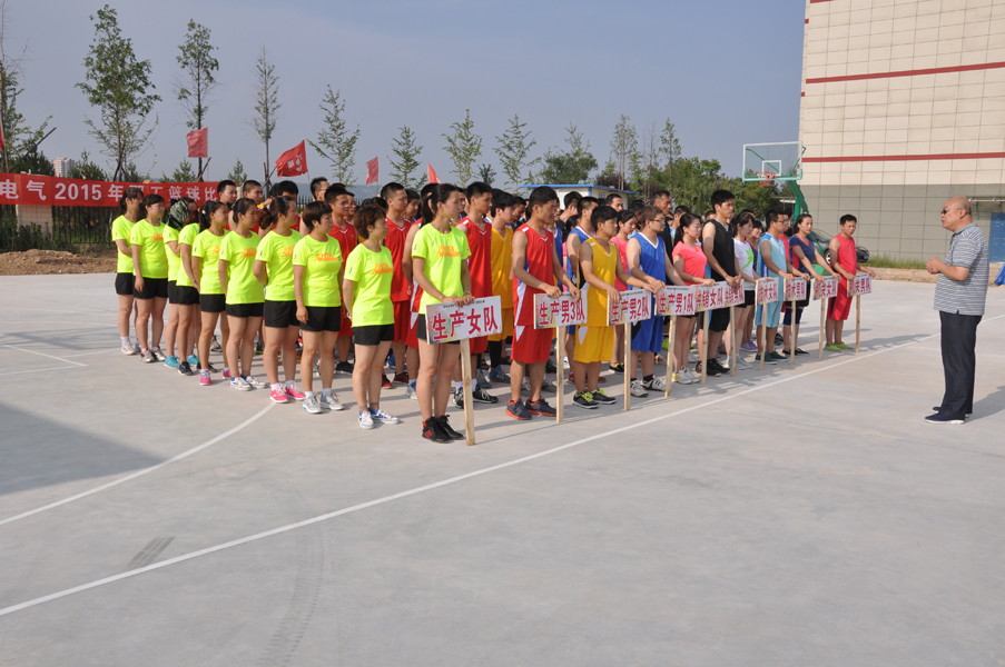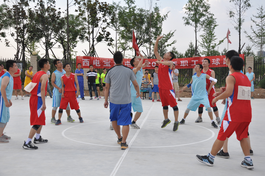 7月20日下午,經(jīng)過簡單裝點(diǎn)的西電寶雞電氣職工生活樓旁的籃球場異常熱鬧,身著各色運(yùn)動(dòng)服裝的運(yùn)動(dòng)員、教練員、裁判員及公司領(lǐng)導(dǎo)和職工齊聚一堂,歡慶2015年職工籃球賽開幕。